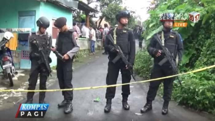 Sehari setelah menangkap 2 terduga teroris, densus 88 anti teror Mabes Polri, Jumat siang (4/2/2016) menggeledah rumah mereka di wilayah Krecek, Banyu