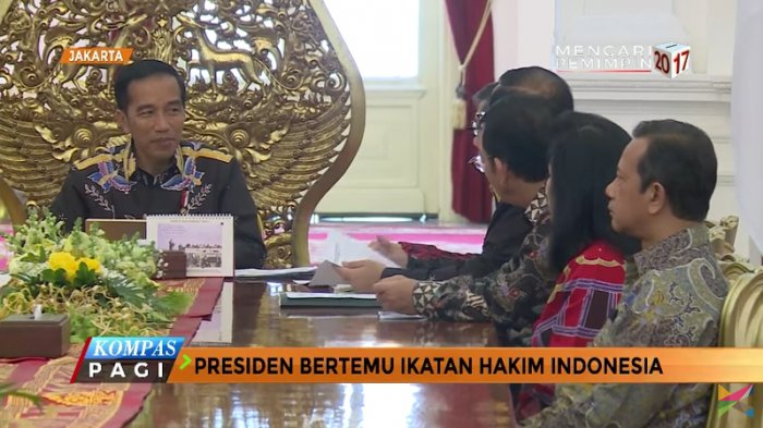TRIBUNNEWS.COM, JAKARTA - Presiden Joko Widodo (Jokowi) menerima perwakilan Pengurus Pusat Ikatan Hakim Indonesia di Istana Merdeka, Jakarta Pusat, Senin (27/3/2017) siang.