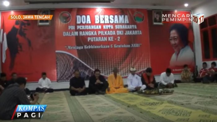 TRIBUNNEWS.COM, SOLO - Kader Partai Demokrasi Indonesia Perjuangan Kota Solo, Jawa Tengah, menggelar doa bersama untuk Pilkada DKI Jakarta, Minggu malam (16/4/2017).