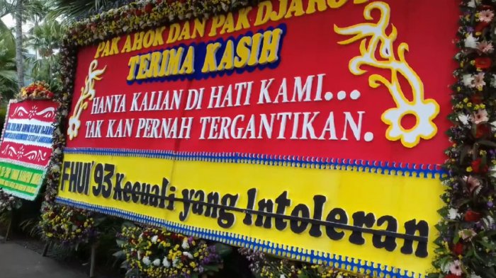 Berikut tulisan-tulisan unik dan nyeleneh yang diungkapkan oleh para pendukung Ahok-Djarot melalui karangan bunga.