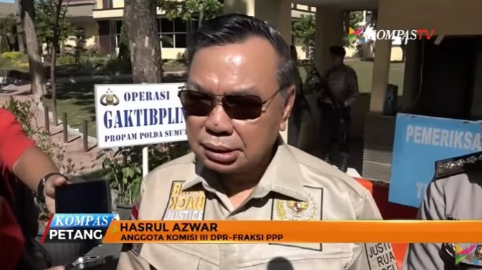 TRIBUNNEWS.COM, MEDAN - Pascapenyerangan pos di markas Polda Sumatera Utara, anggota Komisi III DPR dari fraksi PPP Hasrul Azwar, meninjau lokasi tempat kejadian.
