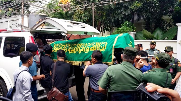 Sebelumnya, istri almarhum sudah tiba terlebih dahulu menggunakan mobil Toyota Alphard putih berplat nomor B 2308 FO.