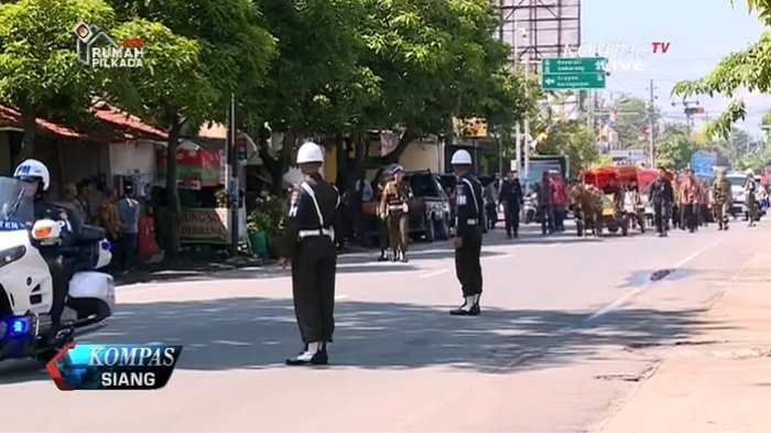Kereta yang ditarik dua ekor kuda ini mendapat pengawalan ketat selama perjalanan menuju Graha Sabha Buana.