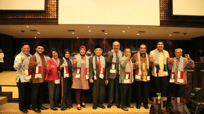 TRIBUNNEWS.COM, JAKARTA-Sebelum pelantikan Senin siang (15/1/2018),Sabam Sirait bersama dengan pimpinan DPD Nono Sampono dan sejumlah anggota DPD berfoto terlebih dahulu, dengan menggunakan syal bendera Palestina. Putra Sabam, Maruarar Sirait, ikut berfoto dan menandai dukungannya pada perjuangan kemerdekaan bangsa Palestina.