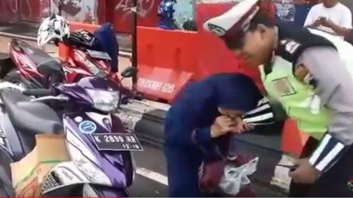 "Saat ibu itu melintas, anggota kami menghentikannya karena tidak mengenakan helm. Saat ditanyakan kelengkapan suratnya, ternyata tidak punya SIM dan STNK, yang dibawa tidak sesuai dengan kendaraannya," kata Eko.