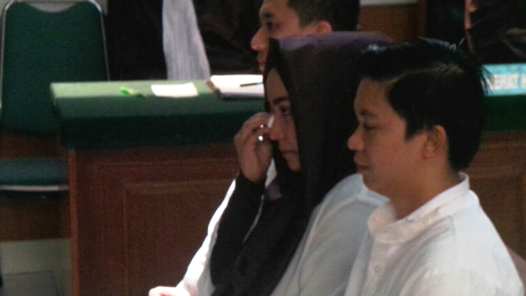 TRIBUNNEWS.COM, DEPOK - Anniesa Hasibuan terlihat menangis saat berada di ruang sidang Pengadilan Negeri Depok, Jawa Barat, Rabu (14/3/2018).