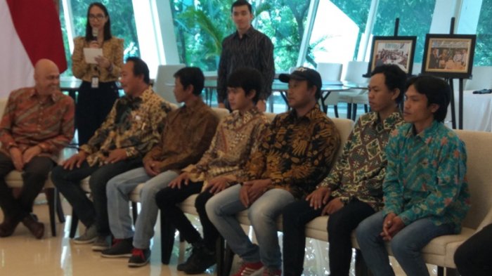 Keenam laki-laki korban sandera tampak kompak mengenakan kemeja batik lengan panjang.
