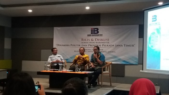 TRIBUNNEWS.COM, JAKARTA - Lembaga survei Indo Barometer merilis hasil survei terhadap pasangan calon gubenur dan wakil gubernur Jawa Timur 2018-2023.