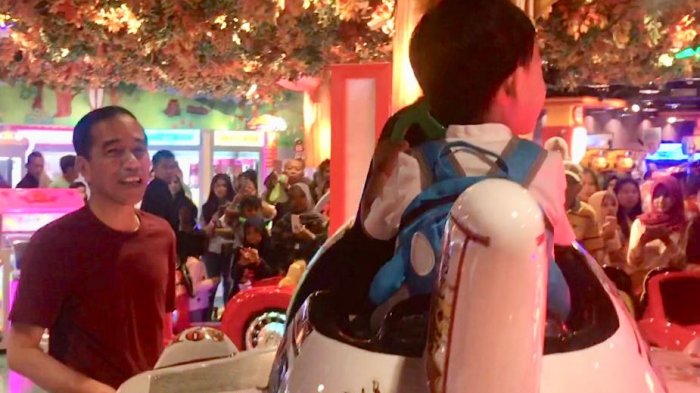 TRIBUNNEWS.COM, JAKARTA - Presiden Joko Widodo memanfaatkan hari libur akhir pekan bermain dengan cucu pertamanya, Jan Ethes, di Botani Square, Bogor, Minggu (19/8/2018).