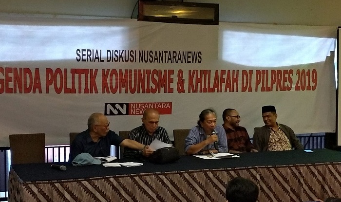 "Yang kongkret JAD itu riil, ada kelompok teror. Yang riil itu, HTI juga sudah dibubarkan sebagai organisasi, tetapi HTI sebagai kumpulan orang kan enggak bisa dibubarin, sebagai ideologi enggak bisa dibubarin, artinya masih bisa menjadi gangguan sistem kita untuk mereka bisa mewujudkan khilafah," ujar Boni dalam diskusi Membedah Agenda Politik Komunisme dan Khilafah di Pilpres 2019, di Bumbu Desa, Cikini, Jakarta Pusat, Sabtu (13/10/2018).