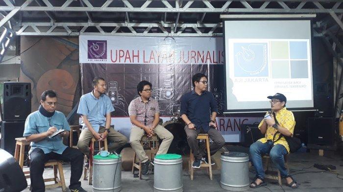 TRIBUNNEWS.COM, JAKARTA - Aliansi Jurnalis Independen (AJI) Jakarta merilis hasil survei upah layak bagi jurnalis pemula di DKI Jakarta pada 2019 sebesar Rp. 8,4 juta. Angka ini naik dibandingkan upah layak jurnalis tahun sebelumnya senilai Rp. 7,96 juta.