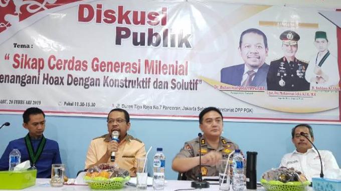 Pernyataan itu disampaikan Kepala Divisi Humas Polri, Irjen Muhammad Iqbal di acara diskusi publik "Sikap Cerdas Generasi Milenial: Menangani Hoaks dengan Konstruktif Solutif" yang diselenggarakan Dewan Pimpinan Pusat Perkumpulan Gerakan Kebangsaan (PGK).