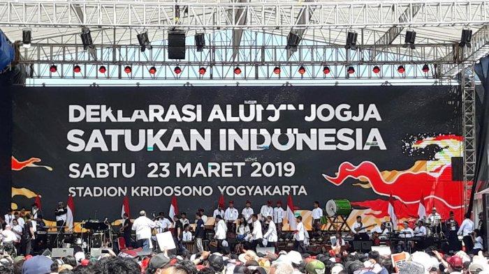 TRIBUNNEWS.COM, YOGYAKARTA - Ribuan pendukung calon presiden nomor urut 01, Jokowi-Ma'ruf Amin, Sabtu (23/3/2019) tumpah ruah di Stasiun Kridosono, Yogyakarta.