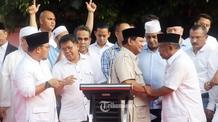 Pantauan Kompas.com, Prabowo hanya ditemani sejumlah elite partai koalisi dan barisan tim kemenangannya. Bebarapa diantaranya yakni Presiden PKS Sohibul Iman, Wakil Ketua Umum Partai Gerindra Sufmi Dasco Ahmad, Sekjen PAN Eddy Soeparno, serta Ketua DPP Demokrat Ferdinand Hutahaean.