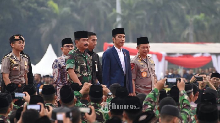 TRIBUNNEWS.COM. JAKARTA - Panglima TNI, Marsekal TNI Hadi Tjahjanto, S.I.P., beserta Kapolri, Jenderal Polisi Prof. H.M. Tito Karnavian melaksanakan Buka Puasa Bersama Presiden RI Ir. H. Joko Widodo dengan 20.000 Prajurit TNI, Polri, Tokoh Agama dan Tokoh Masyarakat, yang bertemakan “Dengan Hikmah Puasa Ramadhan 1440 H/ 2019 M Kita Perkuat Soliditas Dan Sinergi TNI-Polri Dalam Rangka Menjamin Stabilitas Keamanan Nasional”, bertempat di lapangan Monumen Nasional, Jakarta Pusat, Kamis (16/5/2019).