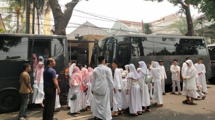 Mereka datang menggunakan tiga bus berukuran besar berwarna hitam.