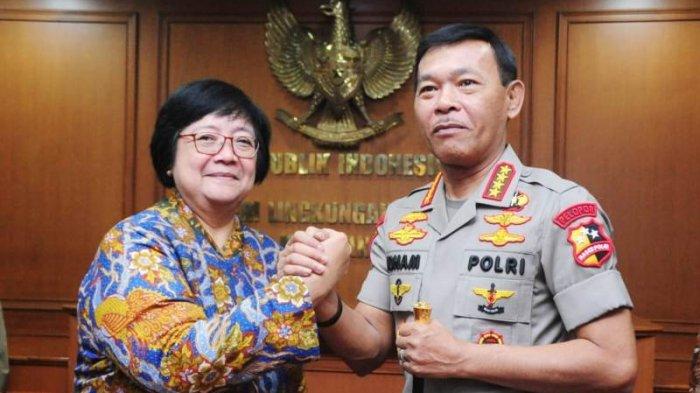 TRIBUNNEWS.COM, Jakarta - Menteri Lingkungan Hidup dan Kehutanan (LHK) Siti Nurbaya Bakar dan Kapolri Jenderal Pol. Idham Aziz sepakat meningkatkan sinergi dalam penanganan masalah-masalah kehutanan dan lingkungan. Prioritas utamanya kebakaran hutan dan lahan (Karhutla).