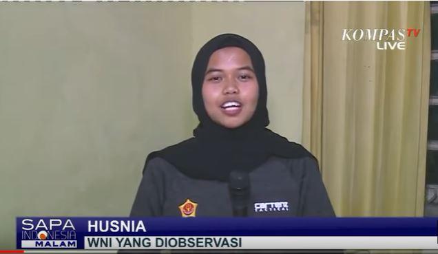 Husnia (kiri), WNI yang jalani proses observasi di Natuna(YouTube Kompas tv)
