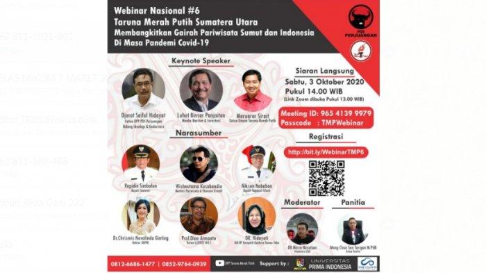 Webinar nasional bertemakan "Membangkitkan Gairah Pariwisata Sumatera Utara dan Indonesia di Masa Pandemi Covid-19" ini akan dilaksanakan melalui aplikasi zoom ini pada Sabtu (3/10/2020) siang jam 14.00-17.00 WIB.