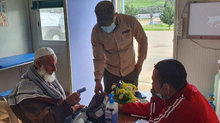 TRIBUNNEWS.COM, JAKARTA - Satgas Batalyon Mekanik Kontingen Garuda (Yonmek Konga) XXIII-O/UNIFIL (Indobatt) memberikan pelayanan kesehatan kepada masyarakat Lebanon Selatan di fasilitas kesehatan milik satgas yakni Rumah Sakit Husada pada Sabtu (13/3/2021).