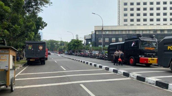 Tak luput, polisi juga menyiagakan sejumlah mobil taktis, antihuru-hara, pemadam kebakaran, hingga kawat berduri.