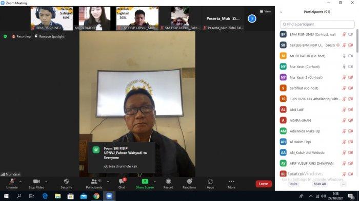 Hal itu disampaikannya dalam Webinar yang di selenggarakan oleh BEM FISIP Universitas Jember bertajuk "Spirit Revivalis Untuk Membangkitkan Peran Mahasiswa Dalam Dunia Legislasi Guna Mewujudkan Bangsa Yang Berkemajuan",