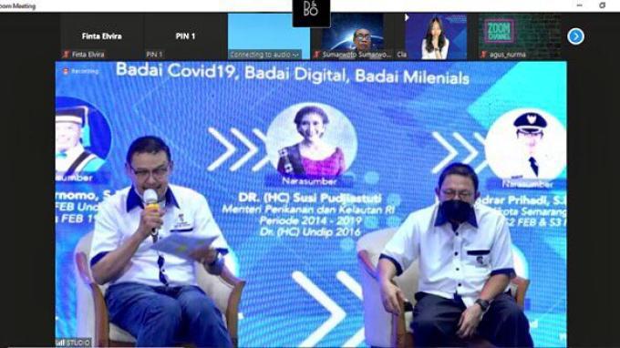 Tampil sejumlah narasumber antara lain, Prof Dr Suharnomo Dekan FEB Undip; Susi Pudjiastuti, Mantan Menteri Kelautan dan Perikanan; Hendrar Prihadi Walikota Semarang; Vicky Simanjuntak, Policy Advisor Kemenkop UKM, dan dr Clarin Hayes (dokter dan youtuber).