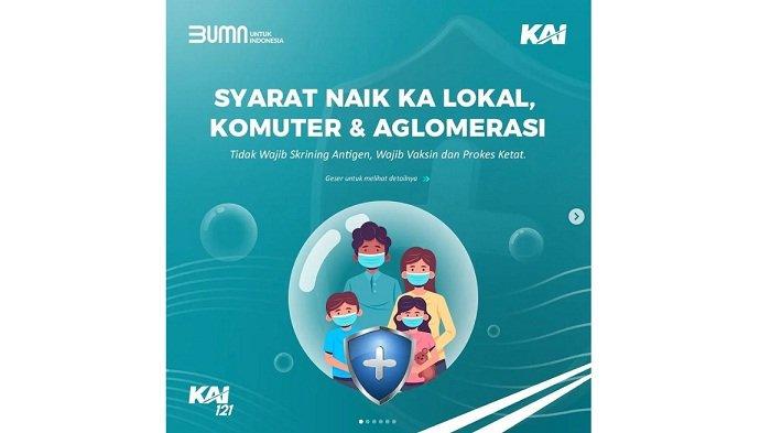 "Syarat Naik KA Lokal, Komuter dan Aglomerasi: Tidak Wajib Skrining Antigen, Wajib Vaksin dan Prokes Ketat," tulis postingan tersebut.