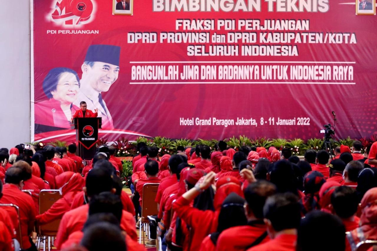 TRIBUNNEWS.COM, JAKARTA - Ribuan anggota DPRD PDI Perjuangan (PDIP) dari seluruh Indonesia menjalani bimbingan teknis yang digelar dalam rangka memeriahkan HUT ke-49, Minggu (9/1/2022).