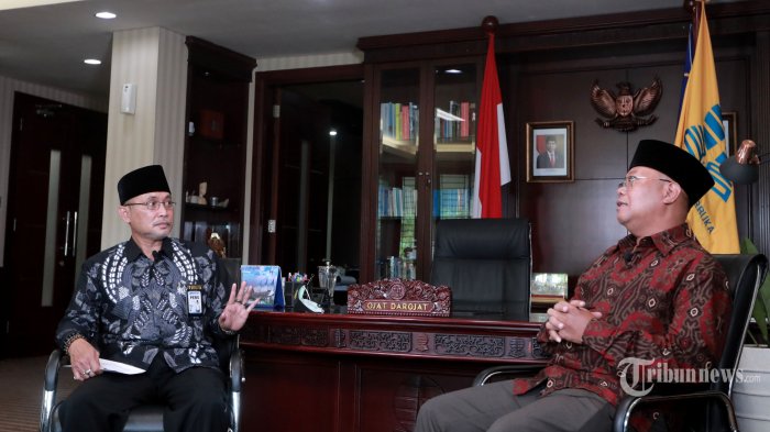 Rektor Universitas Terbuka (UT), Prof Ojat Darojat mengungkapkan dampak positif bagi UT jika berubah status menjadi PTN BH saat melakukan wawancara khusus dengan Direktur Pemberitaan Tribun Network Febby Mahendra Putra pada Jumat (4/2/2022) di Kampus UT Pondok Cabe.