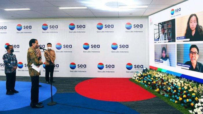 TRIBUNNEWS.COM, JAKARTA - Presiden Joko Widodo (Jokowi) berbincang-bincang dengan sejumlah talenta digital Indonesia dalam peresmian Sea Labs Indonesia, Selasa (1/3/2022).