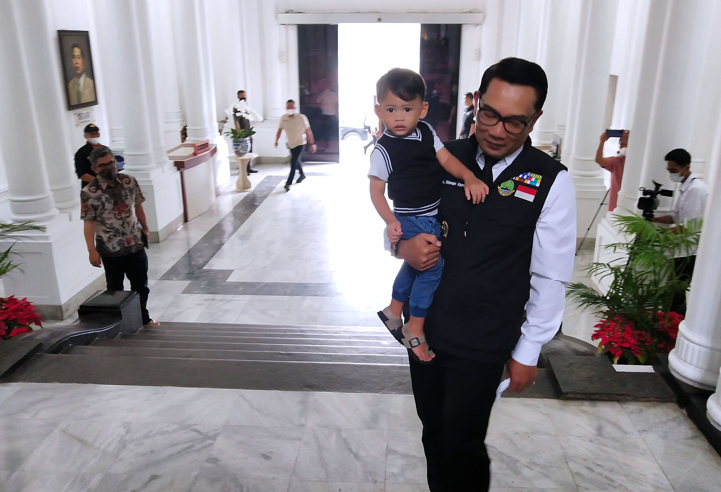 TRIBUNNEWS.COM - Di hari pertama ngantor setelah cuti, Ridwan Kamil mengajak putra bungsunya, Arkana Zaidan Misbach.