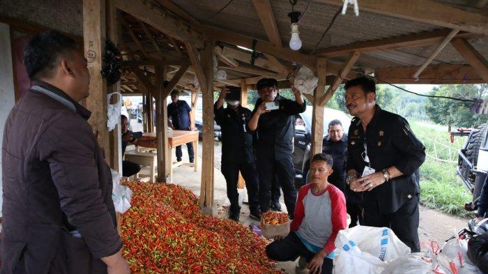 TRIBUNNEWS.COM - Menteri Pertanian Syahrul Yasin Limpo melakukan kunjungan di Desa Sukawangi, Kecamatan Pamulihan, Kabupaten Sumedang, Jawa Barat dalam rangka meninjau ketersediaan cabai sekaligus melakukan panen raya cabai, Sabtu, 2 Juli 2022.