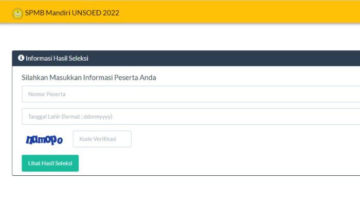 Setelah itu, sistem akan menampilkan pengumuman hasil seleksi SPMB Mandiri UTBK Unsoed 2022.