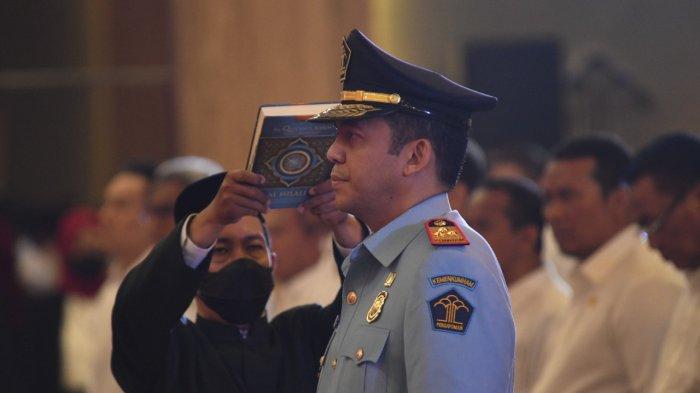 TRIBUNNEWS.COM, JAKARTA - Menteri Hukum dan Hak Asasi Manusia (Menkumham) Yasonna H Laoly melantik Silmy Karim menjadi Direktur Jenderal Imigrasi di Kantor Kementerian Hukum dan HAM (Kemenkumham), Jakarta, Rabu (4/1/2023).