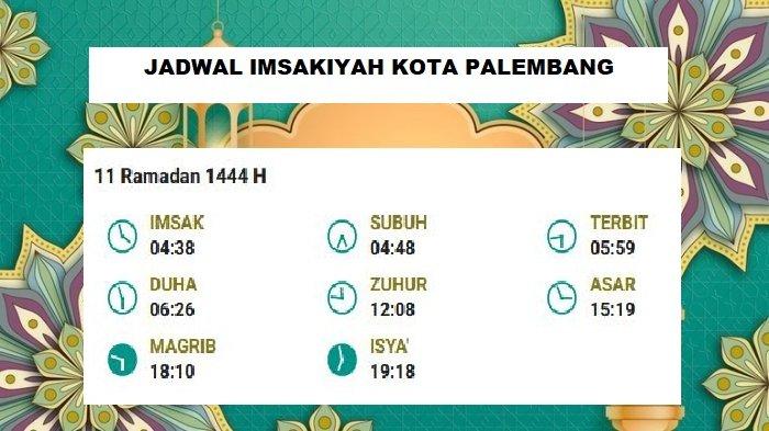 Jadwal Imsakiyah puasa Ramadhan 1444 H di Kota Palembang, Minggu 2 April 2023 atau 11 Ramadhan 1444 H dapat disimak di dalam artikel berikut ini.