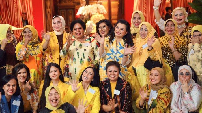 Silaturahmi para istri politikus Partai Golkar ini digelar dengan pakaian bernuansa warna kuning, khas partai nomor urut 4 di Pemilu 2024 ini.