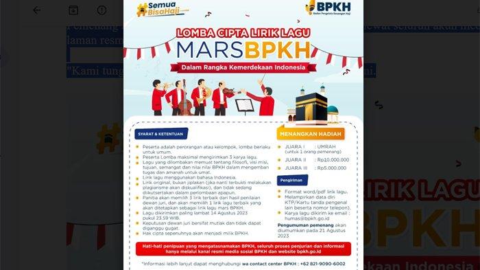Meriahkan HUT Ke-78 RI, BPKH Gelar Lomba Bikin Lirik Mars Berhadiah Umrah, Simak Syarat & Ketentuan