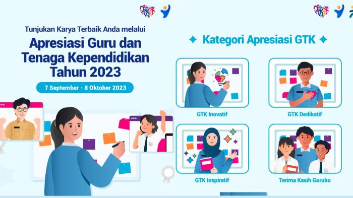 Cara daftar apresiasai Guru dan Tenaga Kependidikan (GTK) 2023, dibuka mulai 7 September hingga 8 Oktober 2023, penghargaan kepada guru inovatif.