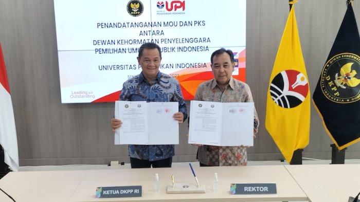 TRIBUNNEWS.COM, JAWA BARAT - Dewan Kehormatan Penyelenggara Pemilu (DKPP) RI bersama dengan Universitas Pendidikan Indonesia (UPI) melakukan penandatanganan Memorandum of Understanding (MoU) sekaligus Perjanjian Kerja Sama (PKS).