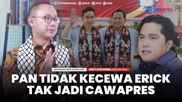 TRIBUNNEWS.COM, JAKARTA - Sekretaris Jenderal Partai Amanat Nasional (Sekjen PAN) Eddy Soeparno mengungkapkan PAN tak menaruh rasa kecewa terlalu besar lantaran Erick Thohir gagal menjadi calon wakil presiden (Cawapres) pendamping Prabowo Subianto.