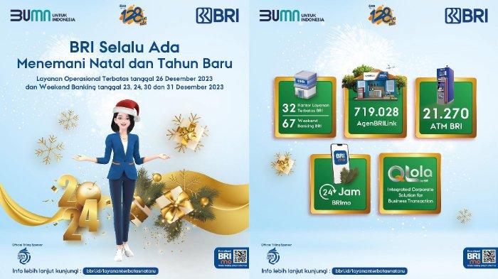 Sementara itu, layanan BRI Weekend Banking berlaku pada 23, 24, 30, dan 31 Desember 2023.