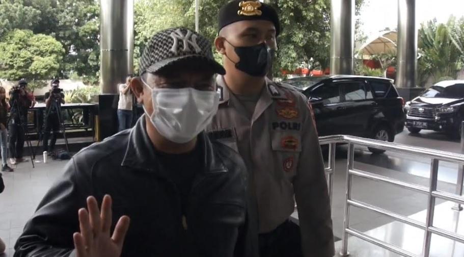 Dikawal seorang petugas kepolisian, Erik Ritonga yang dibalut jaket kulit kelir hitam, topi, dan masker.