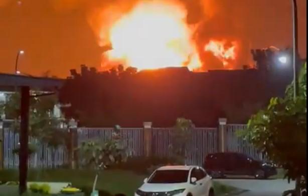 Ledakan tersebut menimbulkan kobaran api yang membumbung tinggi.