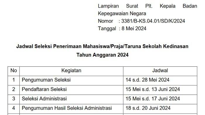 Berikut jadwal seleksi Sekolah Kedinasan tahun 2024: