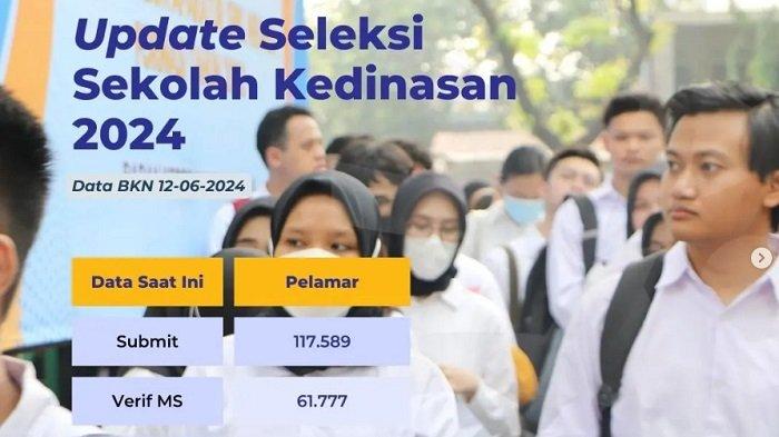 Berdasarkan data Badan Kepegawaian Negara (BKN) per hari ini, Rabu (12/6/2024), pendaftar submit Sekolah Kedinasan berjumlah 117.589 orang.