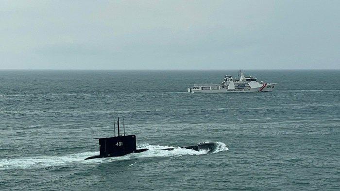 Tampak Kapal Selam KRI Cakra-401 perlahan-lahan muncul ke permukaan dan menampilkan dirinya di depan banyak mata yang menyaksikan langsung dari atas kapal dr Radjiman Widyodiningrat-992.