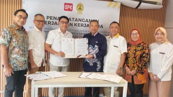 Penandatanganan dilakukan oleh Rektor USM Dr Supari ST MT dengan Ketua Yayasan LSP Konstruksi Firman Pramudianto, dan disaksikan oleh segenap Pengurus Yayasan dan PT LSPKK.