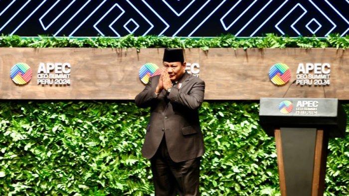 TRIBUNNEWS.COM, JAKARTA - Presiden Prabowo Subianto menyampaikan pidato utama dalam acara APEC CEO Summit di National Grand Theater Peru, pada Kamis, (14/11/2024).