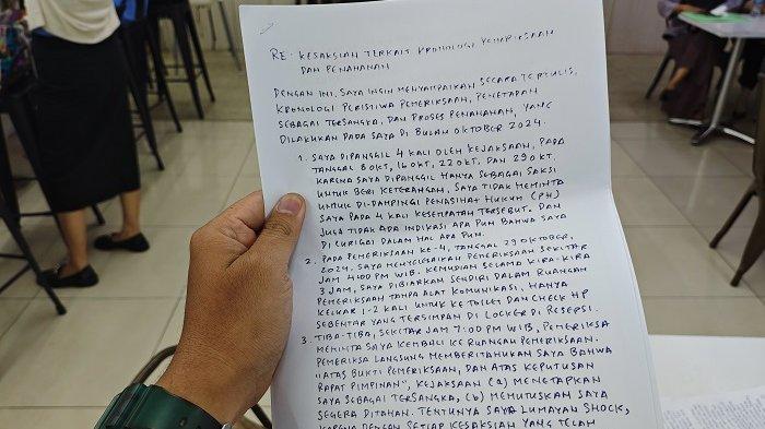 Surat tersebut berisi tiga halaman berisi kronologi peristiwa pemeriksaan penetapan sebagai tersangka dan proses penanganan yang dialami Tom Lembong di bulan Oktober 2024.